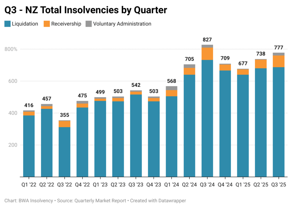 Latest New Zealand Insolvency Data: Key Q3 2025 findings: